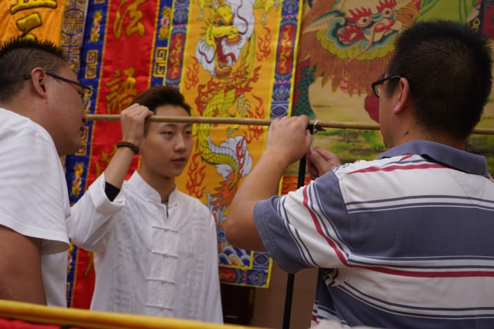 道教法事是為逝者得以安息,生者內心得以安寧而作的追度道場,此為寄託了生者對逝者往日情思及敬孝之心所作出的最後敬意的一門法事。法事儀式包括 1. 喃嘸開路、請水運財、書白布祭文、擔帽買水 2. 上山旺爐 / 旺土安葬、除服英雄 3. 回宅安麈會祖先、旺屋 4. 打齋大法事 5. 破地獄。整個儀式全由喃嘸法師主持。